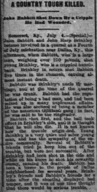 "A Country Tough Killed." The Courier Journal, Louisville, KY. July 5, 1893. Page 1. Newspapers.com.